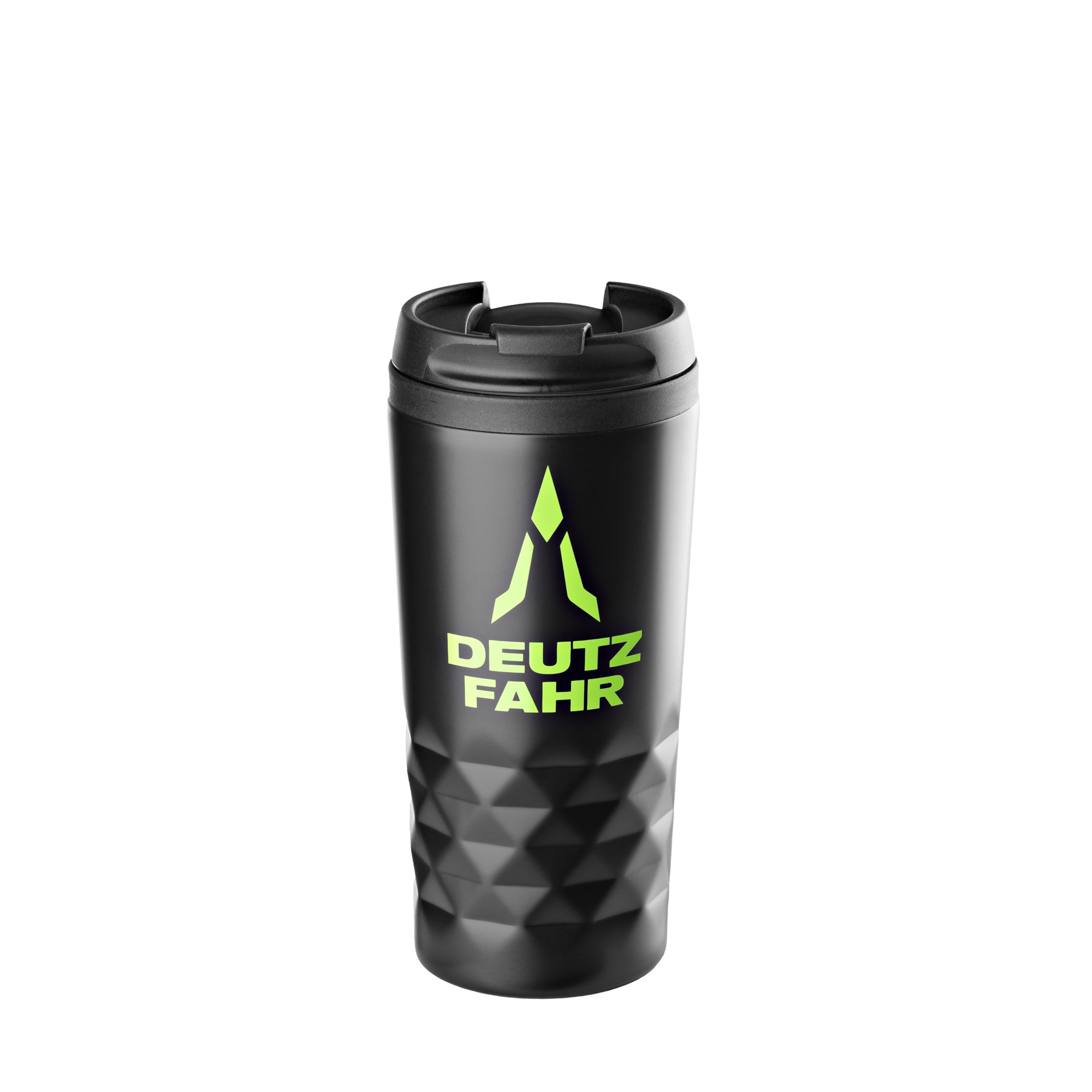 Bicchiere in acciaio inossidabile DEUTZ-FAHR da 300 ml. con interno in plastica. Non va in lavastoviglie. Mantiene il caldo per 3 ore ed il freddo per 6 ore. Viene fornito in confezione regalo.