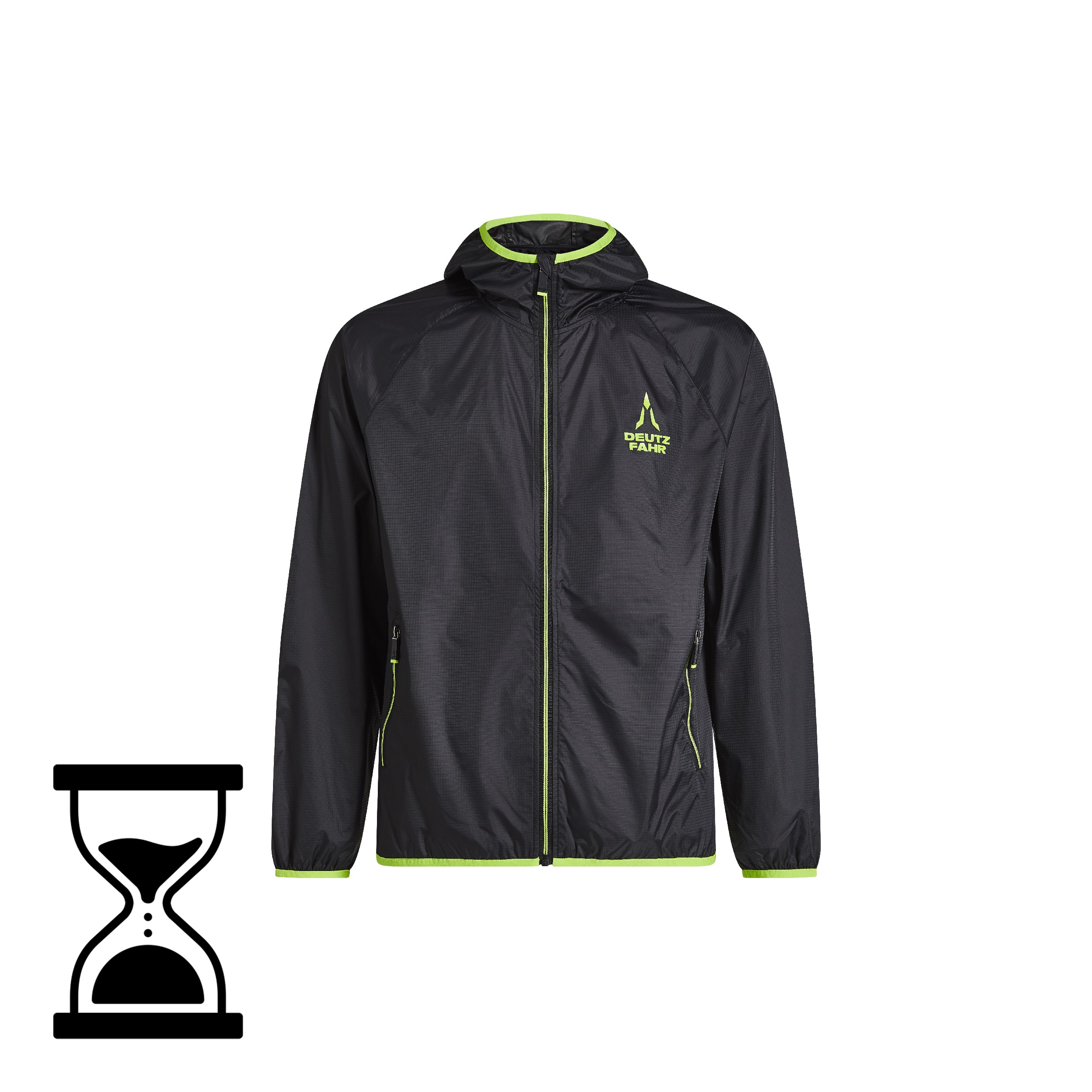 Il K-way nero DEUTZ-FAHR da uomo è realizzato al 100% in nylon senza fodera interna. Dispone di tasche laterali con chiusura a zip per una maggiore praticità. Gli elastici sulle maniche e sul cappuccio consentono una maggiore aderenza nella vestibilità. Questa giacca è totalmente ripiegabile in una tasca, rendendone più facile il trasporto.