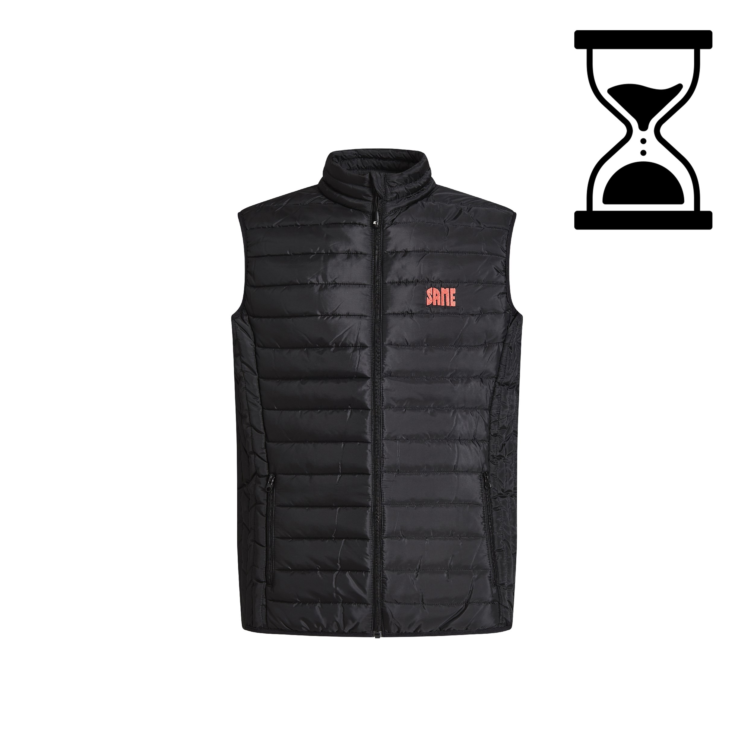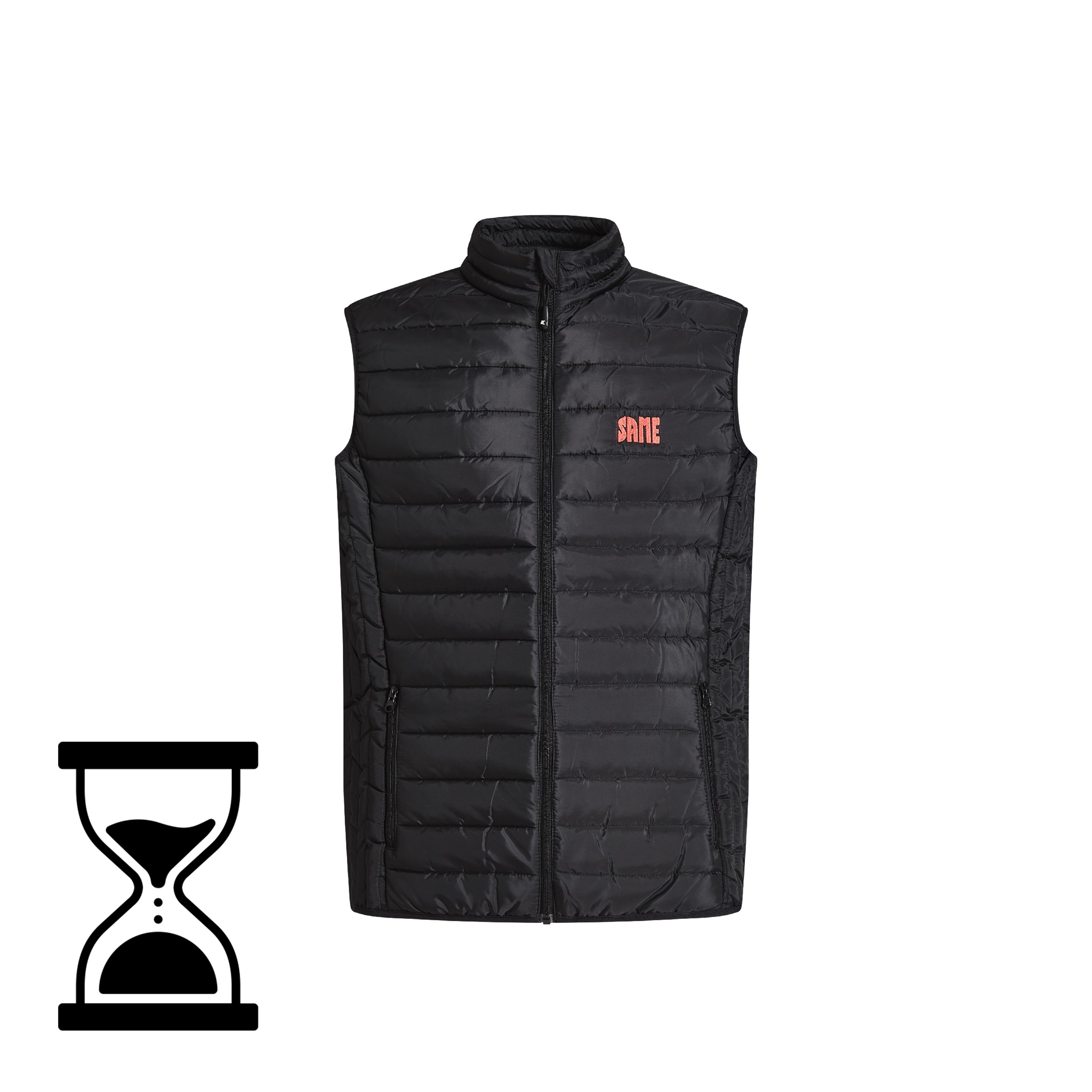 Lo smanicato nero da uomo SAME, con il logo rosso ricamato sul petto, è realizzato in un tessuto impermeabile e resistente agli agenti atmosferici. La sua imbottitura di alta qualità, lo rende morbido e confortevole da indossare. Dettagli come le due tasche con zip, le cuciture verticali lungo i fianchi, il tessuto a protezione del mento e la finitura elastica sia nel giromanica che nel fondo, consentono una vestibilità ottimale e rendono questo capo perfetto per chi cerca un outfit versatile e funzionale.